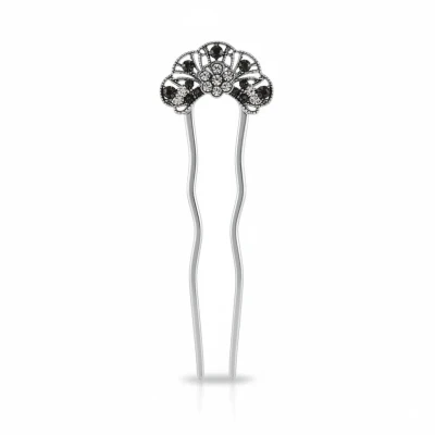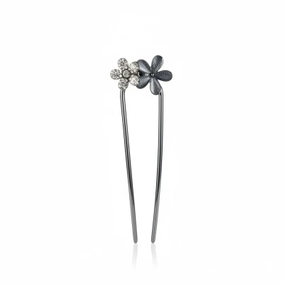 Black Hollow Rhinestone Flower U-Shaped Hairpin