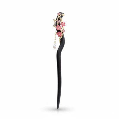 Festive Plum Blossom Ebony Hairpin with Tassel